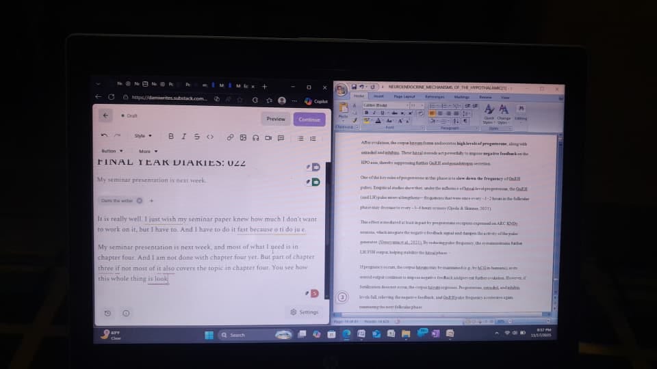 The next thing is to cram. I’ll literally use the whole of tomorrow for that, cramming my pharmacology because I want to use this night to read my general courses and work on my seminar.